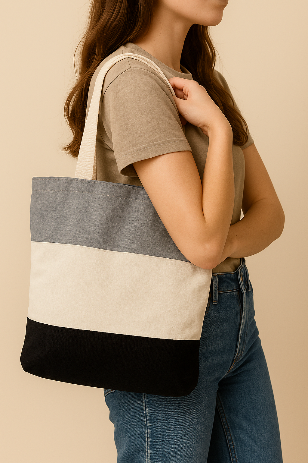 The Coastline Everyday Tote is designed to move with you — whether you’re commuting, beach-bound, or browsing the farmer’s market. Crafted from durable, eco-friendly canvas, this tri-tone bag combines neutral tones of grey, natural white, and black for a refined yet relaxed aesthetic.